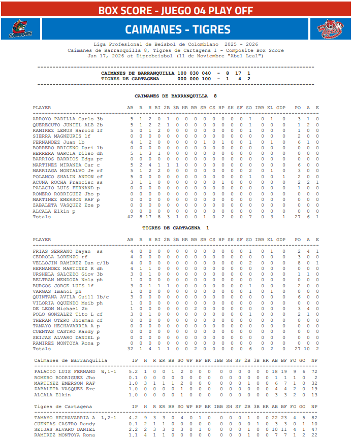 Por Caimanes se destacó Carlos Martinez de 5-4, con un triple, un doble, dos impulsadas y una anotada.