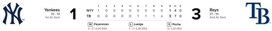 Yankees 1 x Rays 3
