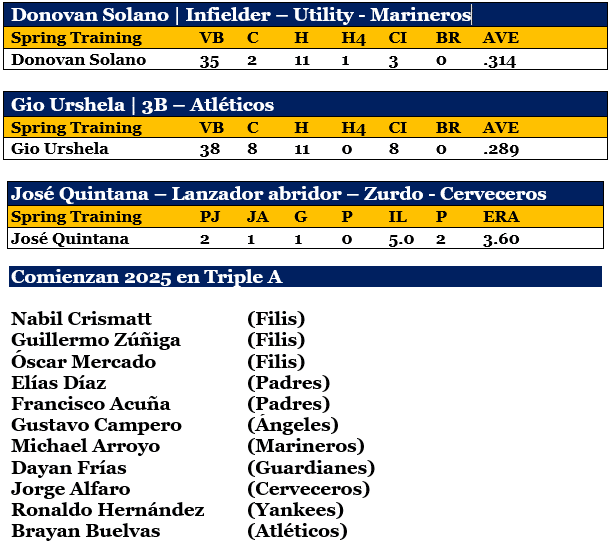 Así actuaron los peloteros nuestros en el spring training que terminó.