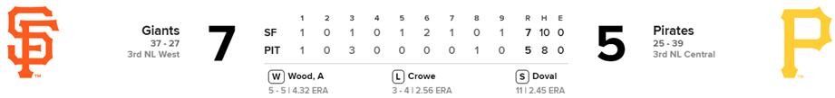 Nabil Crismatt, lanzador derecho, segundo relevo, trabajó 1.0 inning, enfrentó a 3 bateadores, hizo 10 lanzamientos, 7 en zona de strike, y ponchó a 1. (3-0, ERA 1.39, K 24)