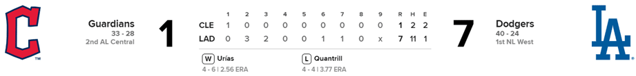 José Quintana, lanzador zurdo, abridor, lanzó 5.1 innings, enfrentó a 23 bateadores, hizo 95 lanzamientos, 57 en zona de strike, le conectaron 5 hits entre ellos 2 jonrones, le hicieron 3 carreras limpias, entregó 2 bases por bolas y ponchó a 5. (1-4 ERA 3.66, 55 K)