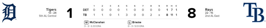 Tigres 1 x Rays 8