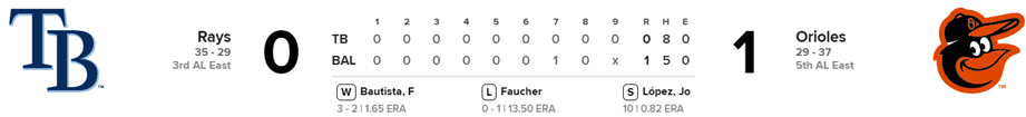 Rays 0 x Orioles 1