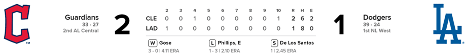 Guardianes 2 x Dodgers 1
