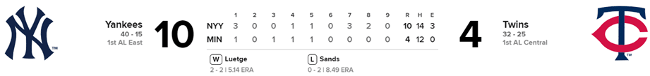 Yankees 10 x Mellizos 4