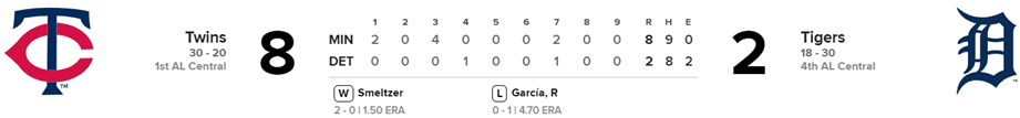 En doble cartelera, Tigres y Mellizos de Minnesota dividieron honores.