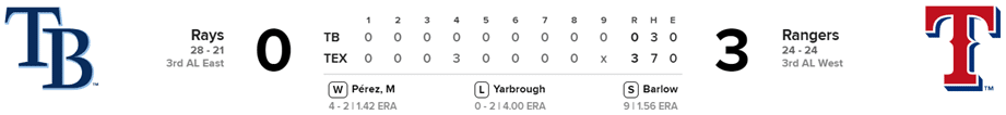 Rays 0 x Rangers 3