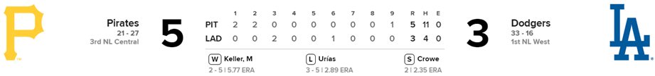 Piratas 5 x Dodgers 3