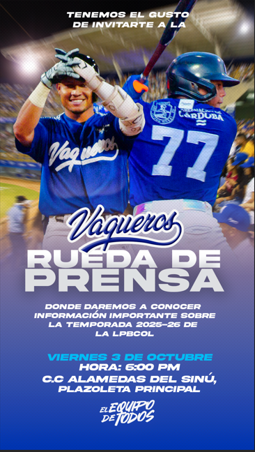 Este viernes, rueda de prensa de Vaqueros de Montería