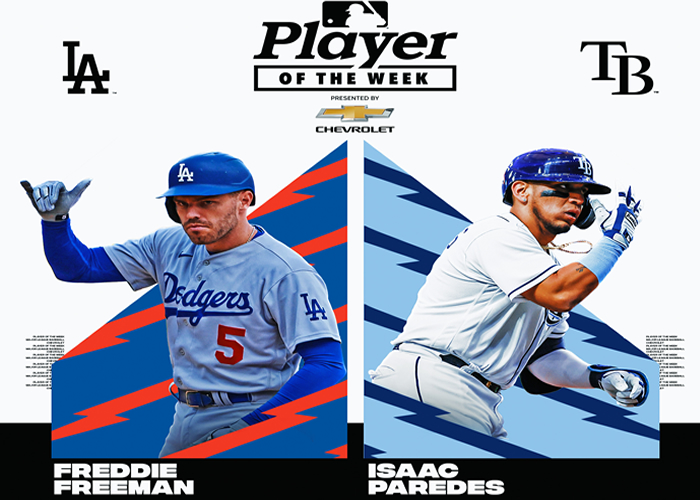 El mexicano Isaac Paredes, de los Rays de Tampa Bay, y el astro Freddy Freeman, de los Dodgers de Los Angeles, fueron elegidos este lunes Jugadores de la Semana en las Grandes Ligas de béisbol.