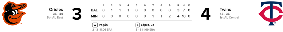 Orioles 3 x Mellizos 4