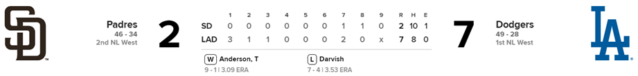Padres 2 x Dodgers 7