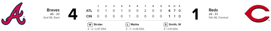 Reiver Sanmartín, lanzador zurdo, segundo relevo, lanzó 0.2 innings, enfrentó a 3 bateadores, hizo 10 lanzamientos, 6 en zona de strike y permitió 1 tubey. (0-4, ERA 9.99, 17 K)