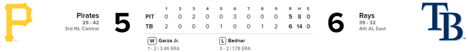 Piratas 5 x Rays 6