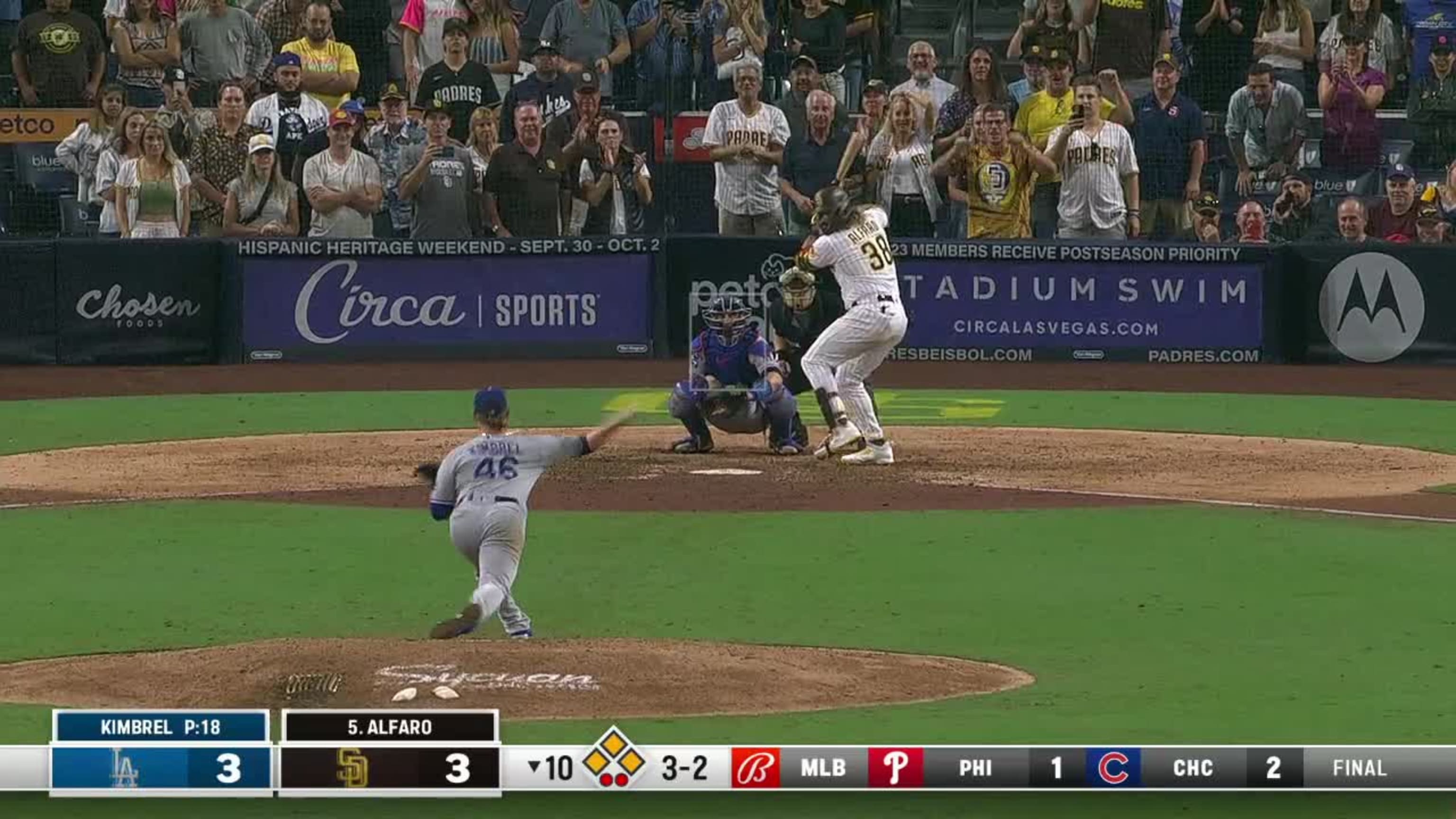 Jorge Alfaro, catcher y 6º bate, sin turno oficial, recibió una base por bolas, en la parte baja de la 10ª entrada, y con ella trajo al plato a José Azocar con la carrera ganadora, en momentos en que estaba en la tercera base habiendo bases llenas, dejando a los Dodgers tendidos al campo. (AVE .249)