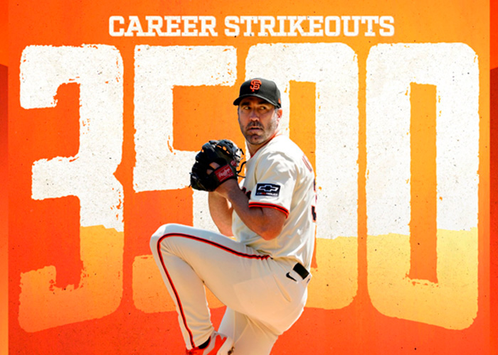 Justin Verlander comenzó la jornada del domingo a tres ponches de convertirse en el 10mo lanzador en la historia de las Grandes Ligas en alcanzar las 3,500 K de por vida.