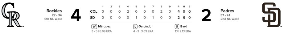 Rockies 4 x Padres 2