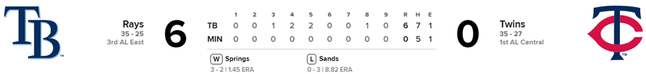 Rays 6 x Mellizos 0