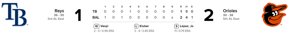 Rays 1 x Orioles 2