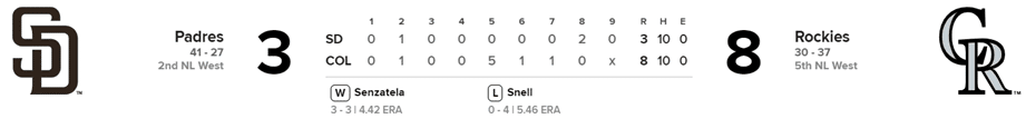 Padres 3 x Rockies 8