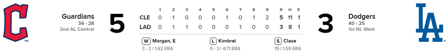 Guardianes 5 x Dodgers 3