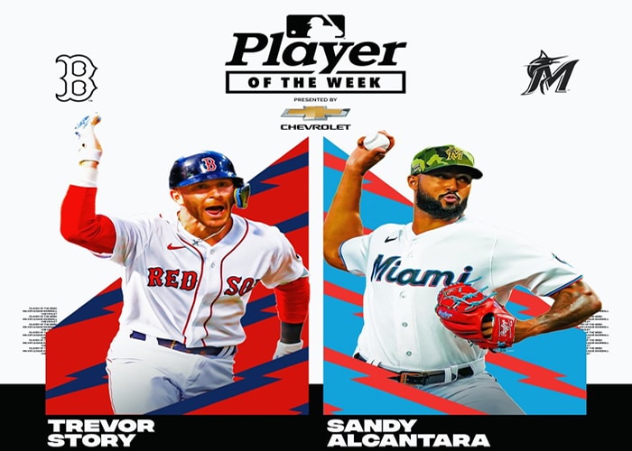 El derecho dominicano Sandy Alcántara, de los Marlins de Miami, y el toletero Trevor Story, de los Medias Rojas de Boston, fueron nombrados este lunes ‘Jugadores de la Semana’ en las Grandes Ligas de béisbol.