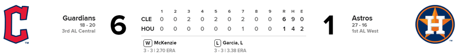 Guardianes 6 x Astros 1