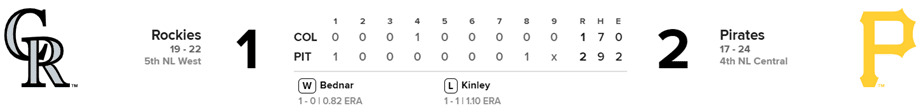 Rockies 1 x Piratas 2