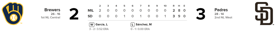 Cerveceros x Padres (10 innings)