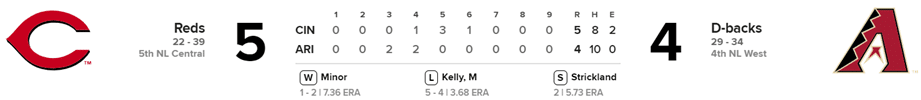 Reiver Sanmartín, lanzador zurdo, segundo relevo, trabajó en 0.2 innings, enfrentó a 3 bateadores, hizo 20 lanzamientos, 12 en zona de strike, le conectaron 1 hit y ponchó a 1 bateador. (0-4, ERA 13.24, 11 K)