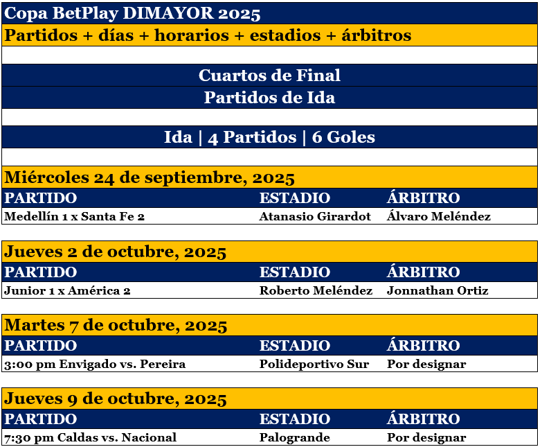 Cuartos de Final, Medellín semifinalista, próxima semana 2 partidos