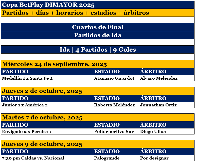Ida Cuartos de Final, este jueves Caldas vs. Nacional