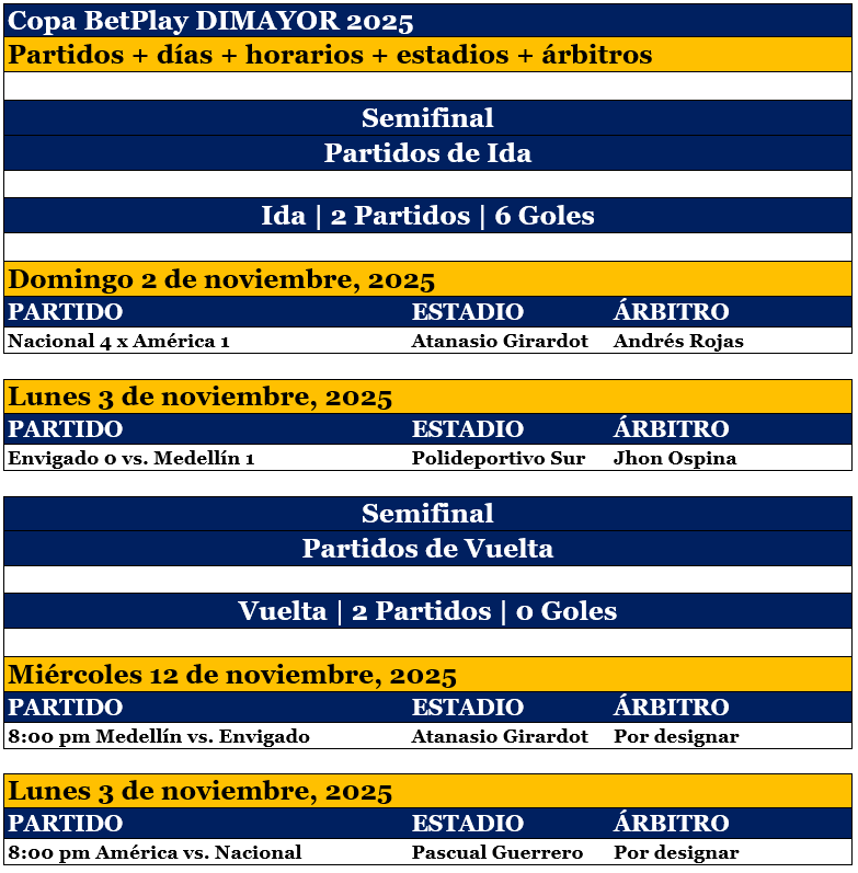 Semifinal Copa Betplay, 12 y 13 de noviembre se jugarán los partidos de Vuelta