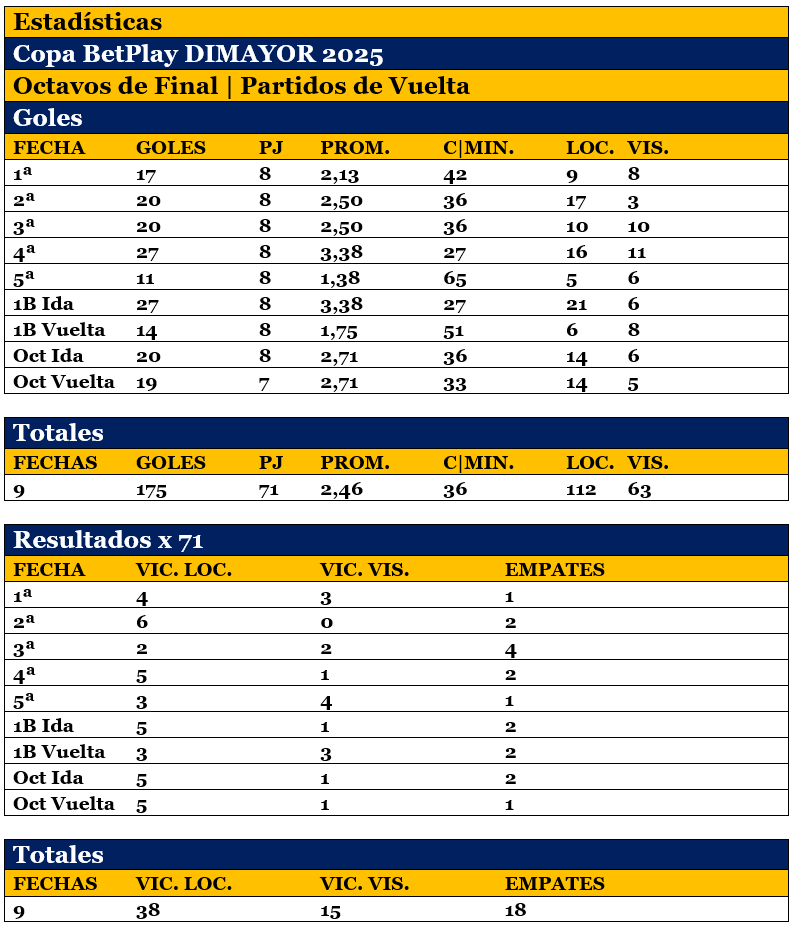 Vuelta Octavos de Final, 175 goles en 71 partidos