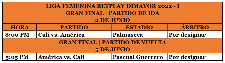 Deportivo Cali y América de Cali disputarán la gran final de la Liga Femenina 2022. El partido de ida será este jueves, a partir de las 8:00 PM, en el Estadio Palmaseca.