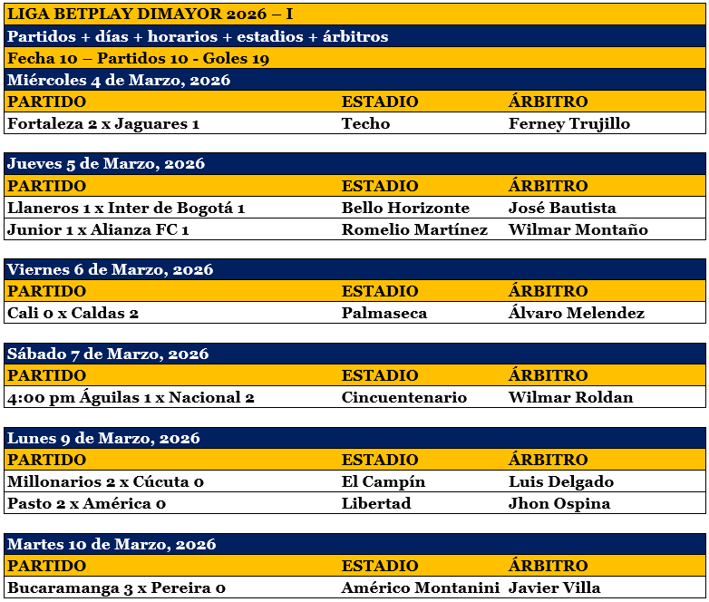 10ª fecha Liga Betplay, en abril se jugarán 2 partidos pendientes