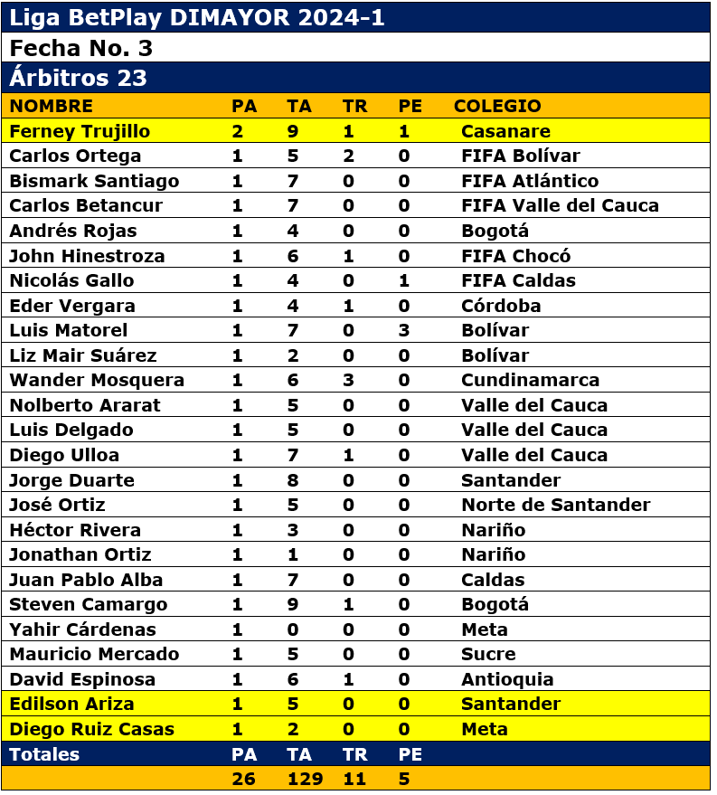 26 Árbitros, 129 tarjetas amarillas, 11 rojas y 5 penaltis