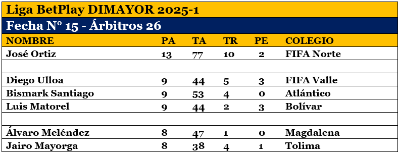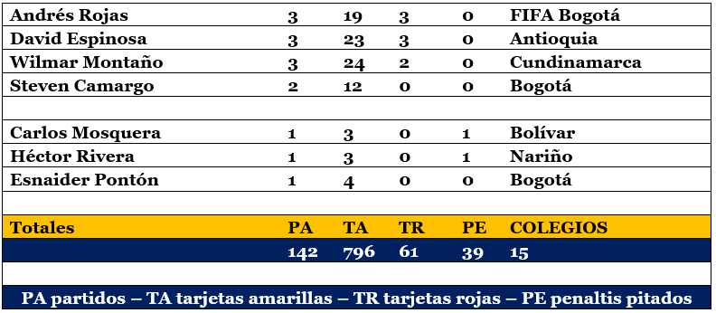 26 Árbitros, 796 tarjetas amarillas, 61 rojas y 39 penaltis