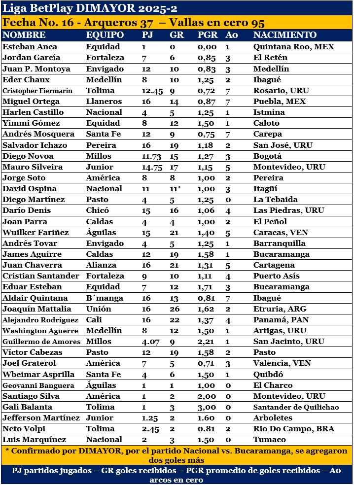 37 arqueros, 14 extranjeros, 95 vallas en cero