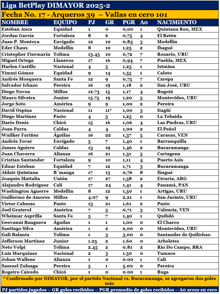 39 arqueros, 14 extranjeros, 101 vallas en cero