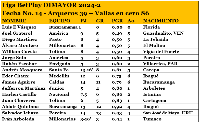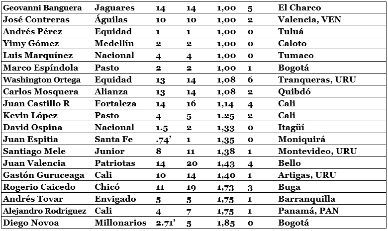 39 arqueros, 9 extranjeros, 86 vallas en cero