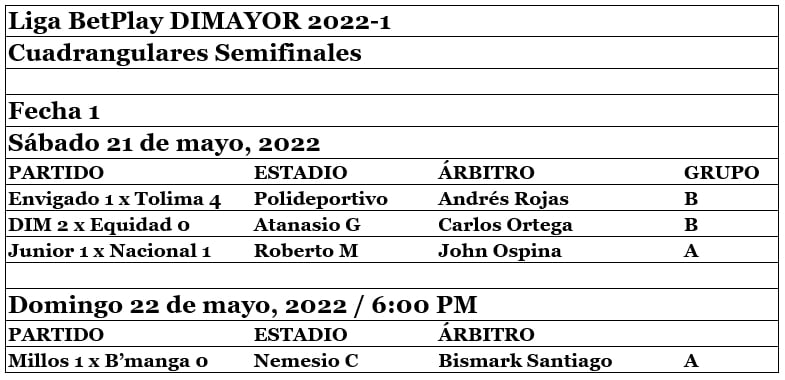 Tolima y Millonarios se estrenaron con victorias en la primera fecha de los cuadrangulares semifinales del torneo Apertura del fútbol colombiano, que se disputó este fin de semana.