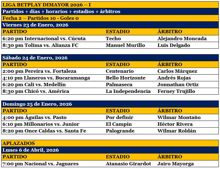 Comienza la 2ª fecha de la Liga Betplay, este viernes Internacional vs. Cúcuta y Tolima vs. Alianza