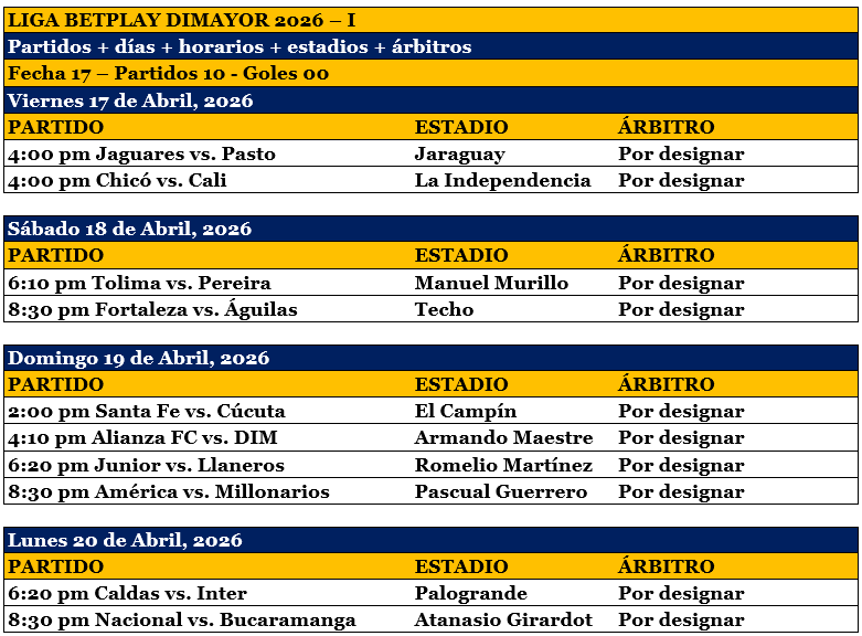 Con dos partidos, este viernes en la tarde comenzará la 17ª fecha