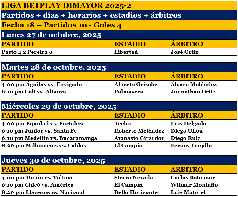 Continúa la 18ª fecha, este martes Águilas vs. Envigado y Cali vs. Alianza