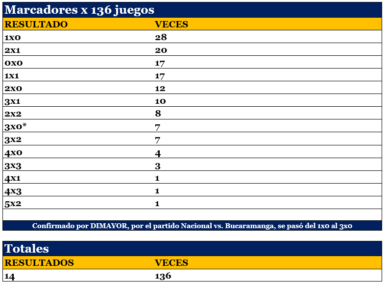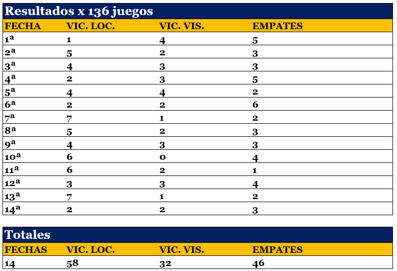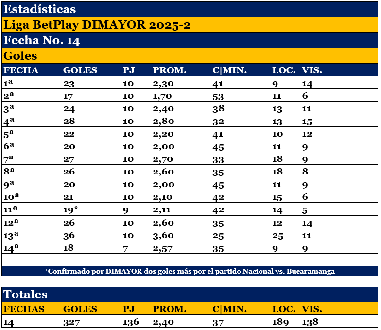 En 14 fechas, 327 goles en 136 partidos, 2,40 por juego