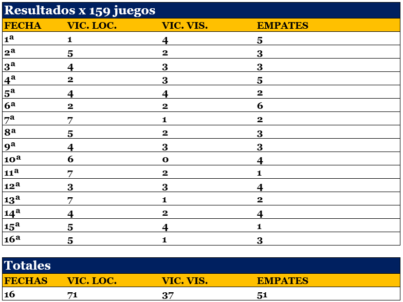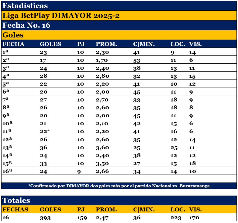 En 16 fechas, 293 goles en 159 partidos, 2,47 por juego