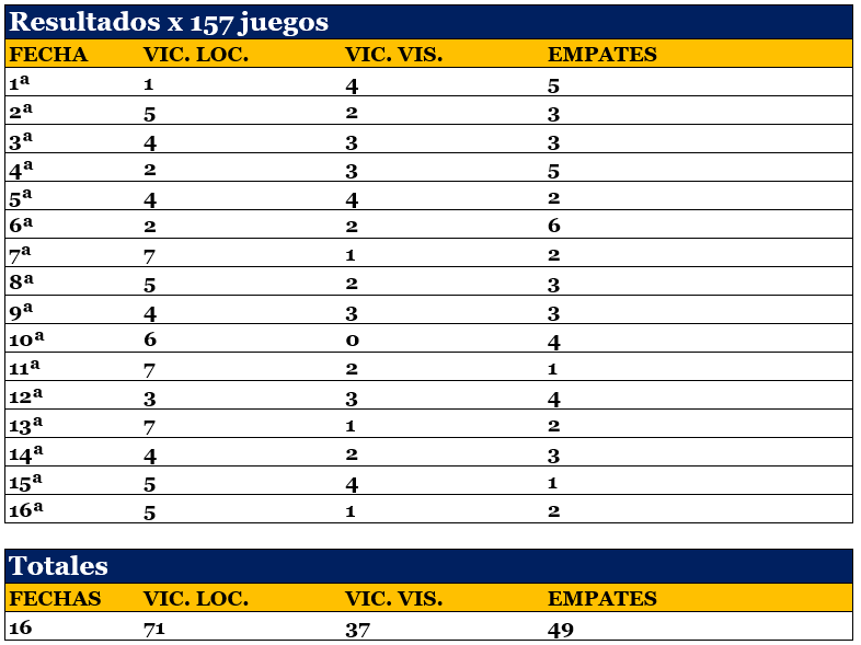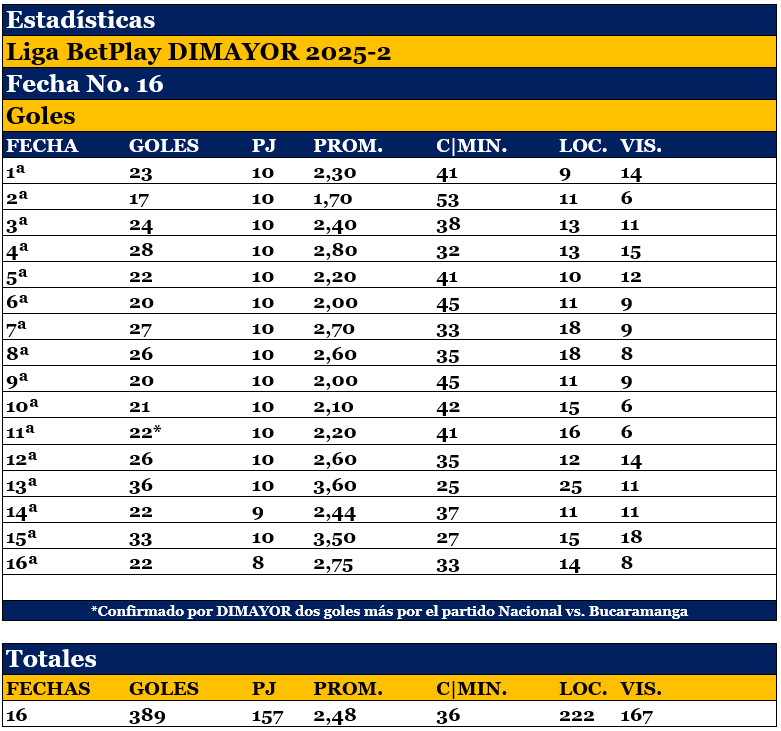 En 16 fechas, 389 goles en 157 partidos, 2,75 por juego