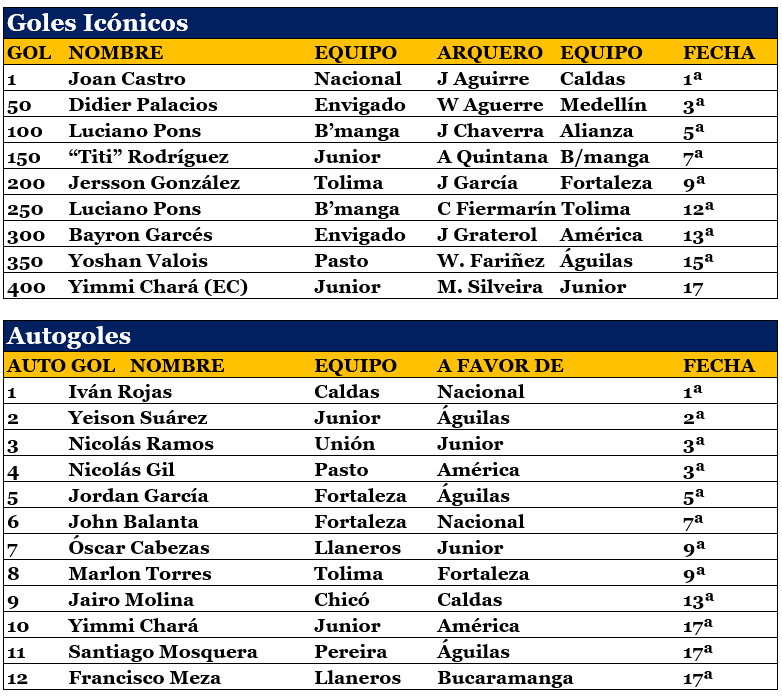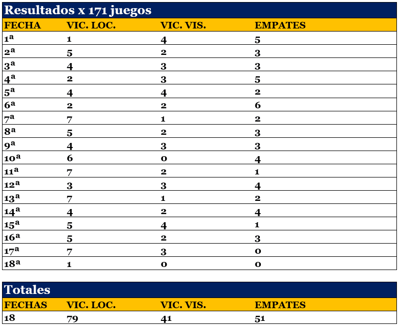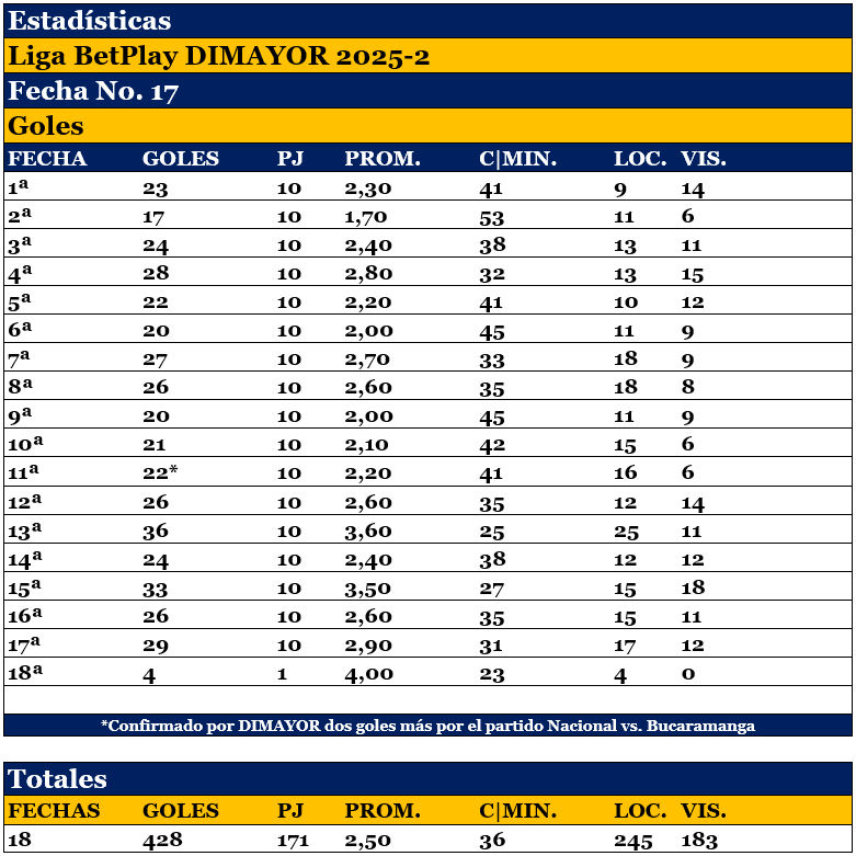En 18 fechas, 428 goles en 171 partidos, 2,50 por juego
