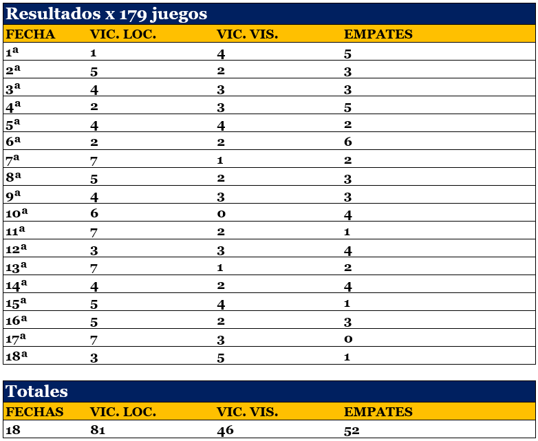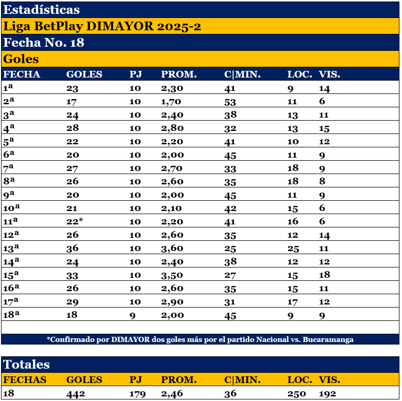 En 18 fechas, 442 goles en 179 partidos, 2,46 por juego